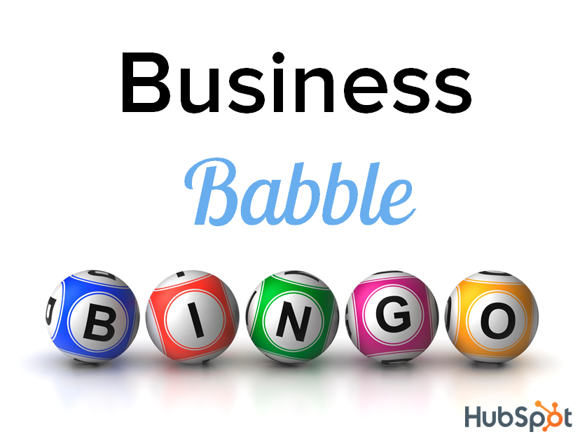I grabbed my fellow business-babble-averse co-worker , and hammered out a list of the 85 most egregious business babble buzzwords. Then I created some Bingo cards -- available for you to print out or just save to your desktop -- . Here's a preview of one of the filled-in cards for you: