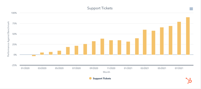 探花精选's Industry Data, for instance, shows a consistent rise in support tickets since the beginning of the pandemic — from 6% in March of 2020 to over 90% as of August 2021: